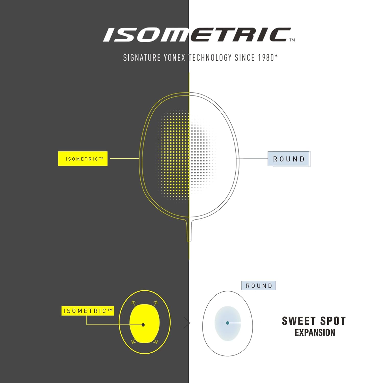 • Isometric - Enlarged Sweet Spot compared to a conventional round frame, a square-shaped Isometric racquet generates a larger sweet spot by optimizing the intersection of the main and cross strings. Isometric delivers greater control without sacrificing power.
