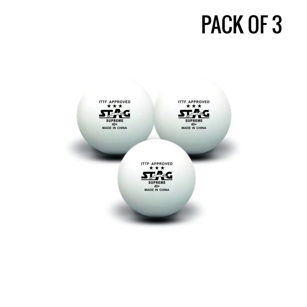 STAG 3 Star Supreme Table Tennis Plastic Ball Pack of 3 (White)